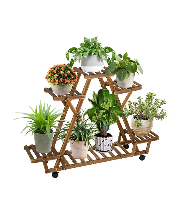 Unho 6 Tiers Wood Plant Stand Storage Triangular Flower Pot Holder for Outdoor Indoor
