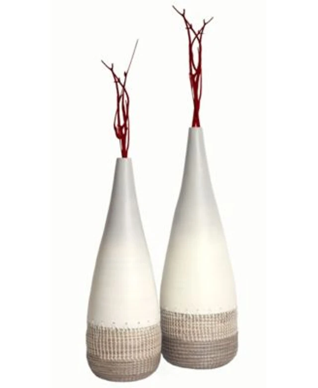Uniquewise Spun Bamboo and Coiled Seagrass Patterned Vase, Set of 2