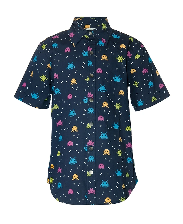 Univibe Big Boys Invaders Print Short Sleeve Woven Shirt