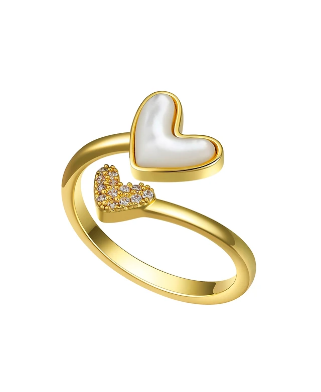 Unwritten Cubic Zirconia and Mother of Pearl Heart Bypass Ring