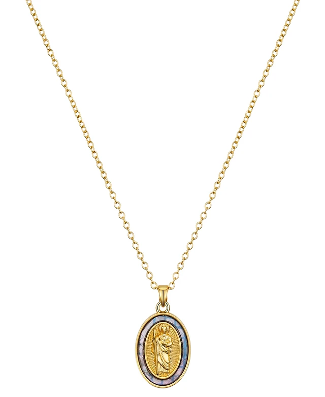Unwritten Light Blue Enamel Saint Pendant Necklace