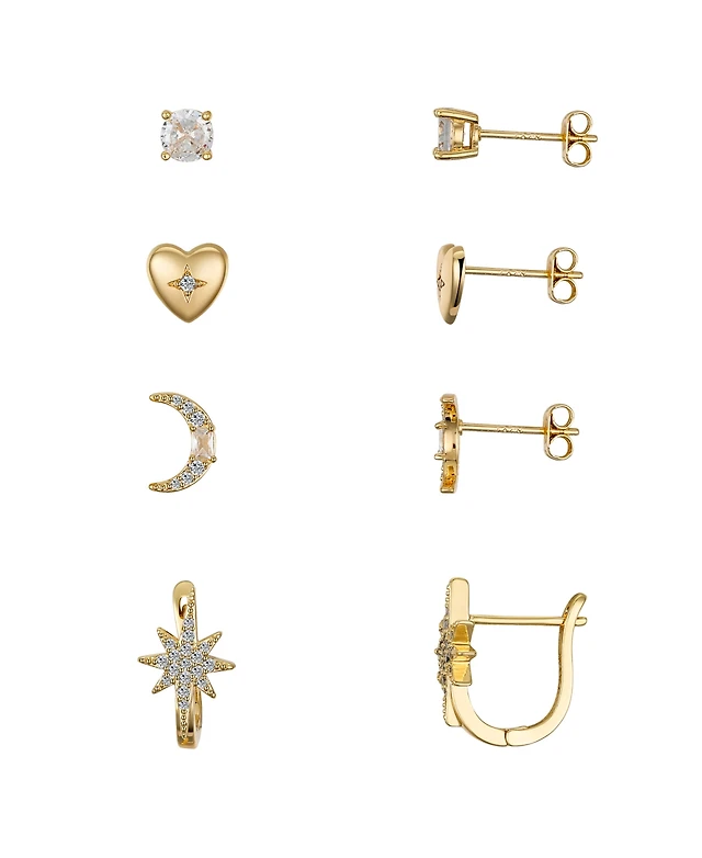 Unwritten Cubic Zirconia Heart Moon Star Hoop Stud Earring Set