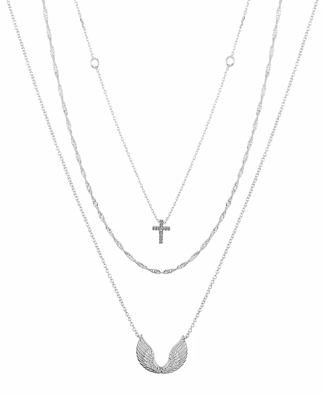 Unwritten Cubic Zirconia Cross and Wing Layered Necklace Set