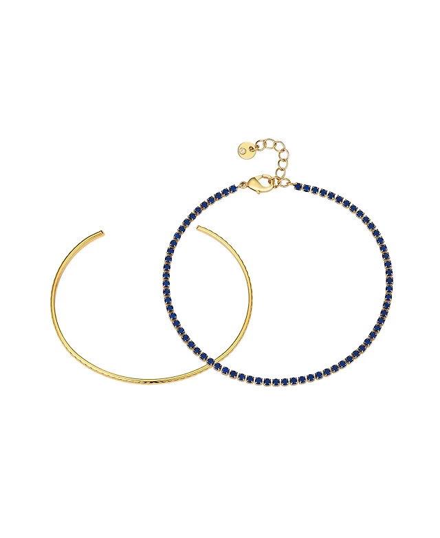 Unwritten Blue Sapphire Cubic Zirconia Tennis and Cuff 2 Piece Bracelet Set