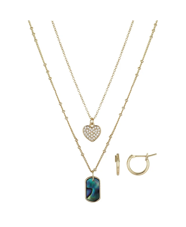 Unwritten Pave Crystal Heart and Genuine Abalone Stone Necklace and Earring Set, 4 Piece