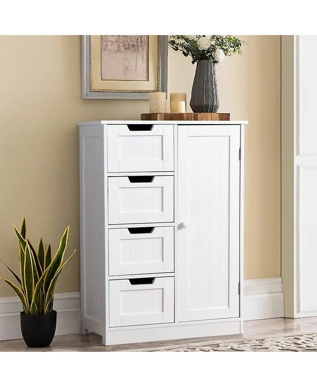 Vanirror White Freestanding Bathroom Storage Cabinet – 4-Drawer Organizer with Adjustable Shelf for Bathroom, Kitchen & Living Room