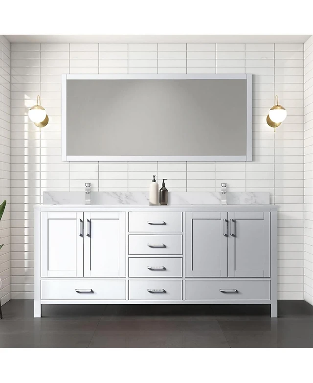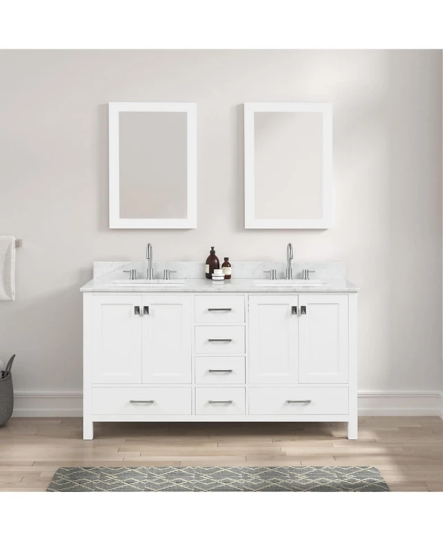 Vanirror 60-Inch Double Bathroom Vanity in Matte White – Solid Wood Cabinet with Marble Countertop and Ceramic Undermount Sink