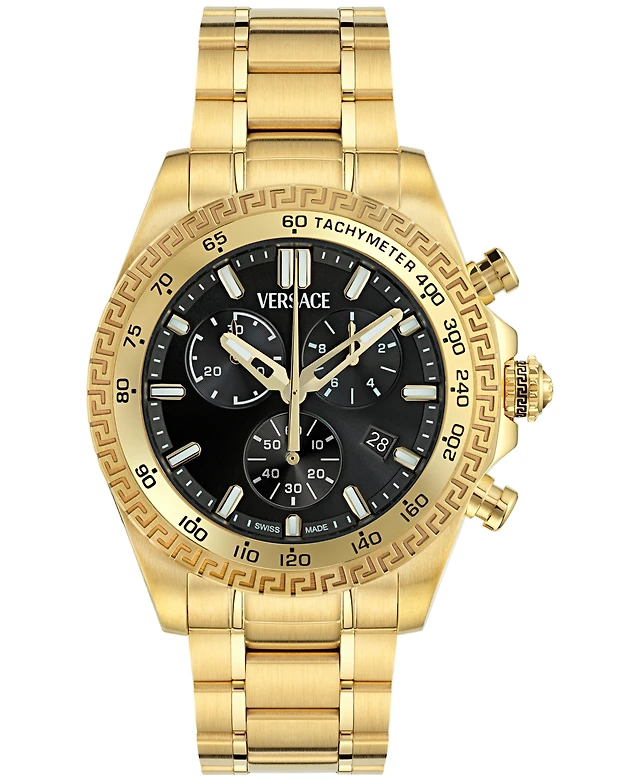 Versace Men's Swiss Chronograph X Gold Ion Plated Stainless Steel Bracelet Watch 44mm