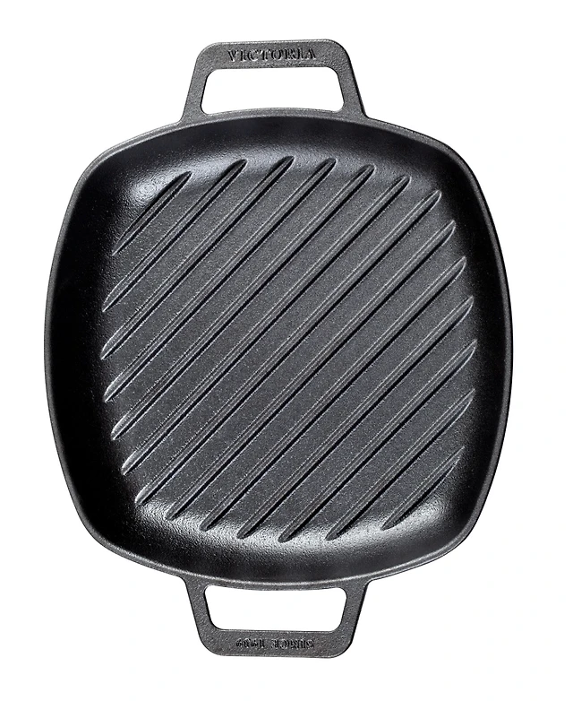 Victoria 10in Square Grill Pan with Double Loop Handles, Seasoned