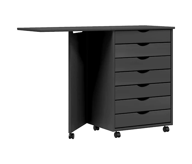 Rolling Cabinet with Drawers Moss White Solid Wood Pine
