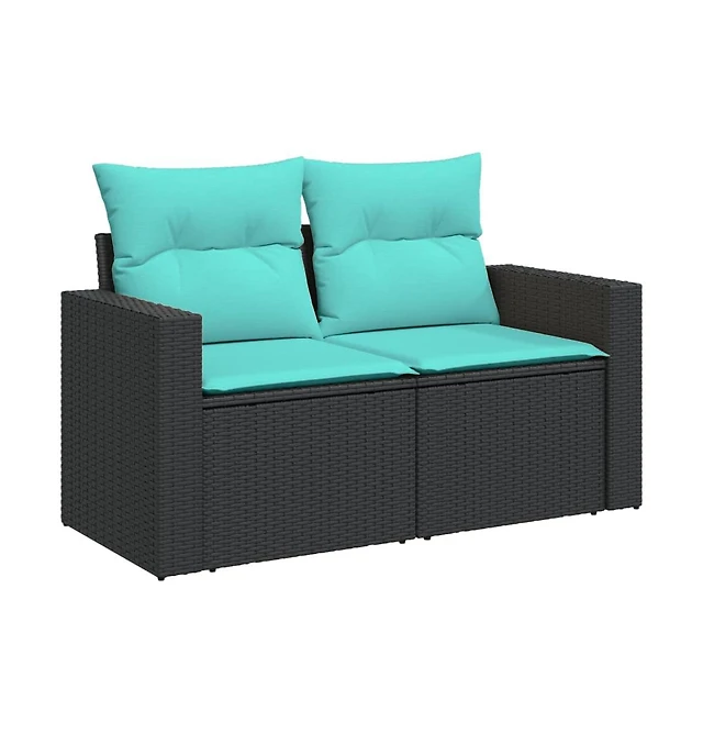 Garden Sofa Black Pe Rattan 2-seater Removable Covers