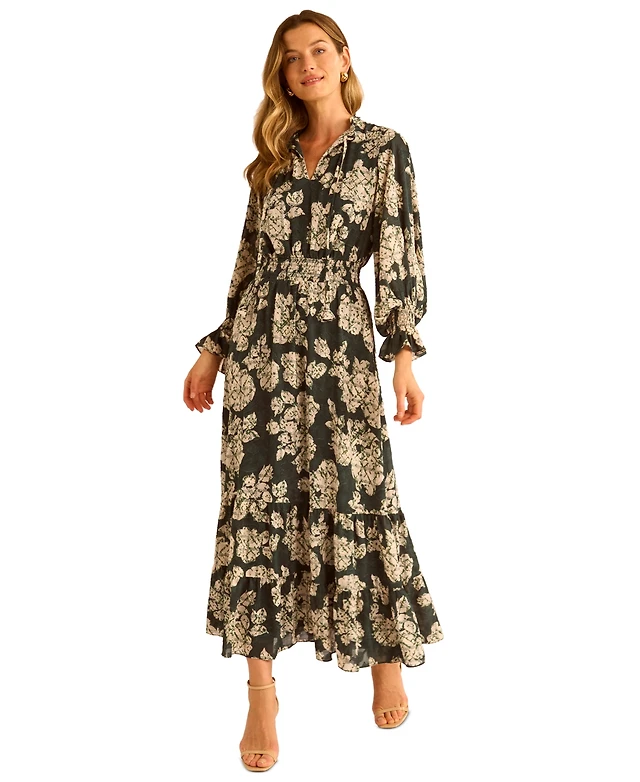 Vince Camuto Women's Long-Sleeve Smocked-Waist Tiered Dress
