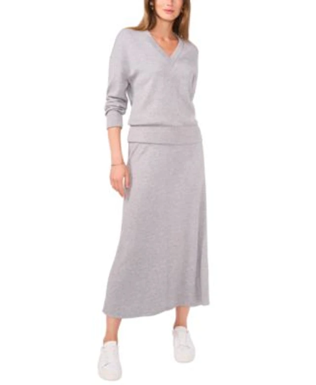 Vince Camuto Womens V Neck Long Sleeve Sweater Maxi Skirt