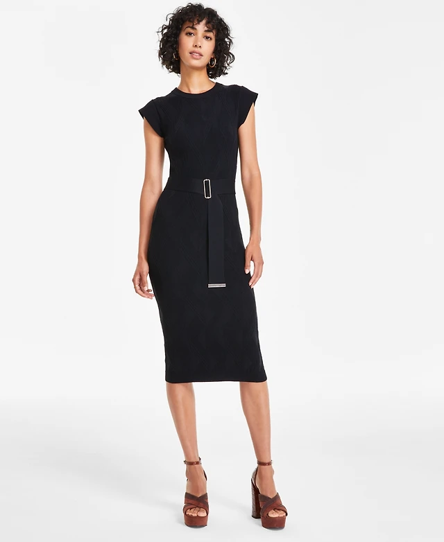 Vince Camuto Women's Textured-Knit Cap-Sleeve Midi Dress
