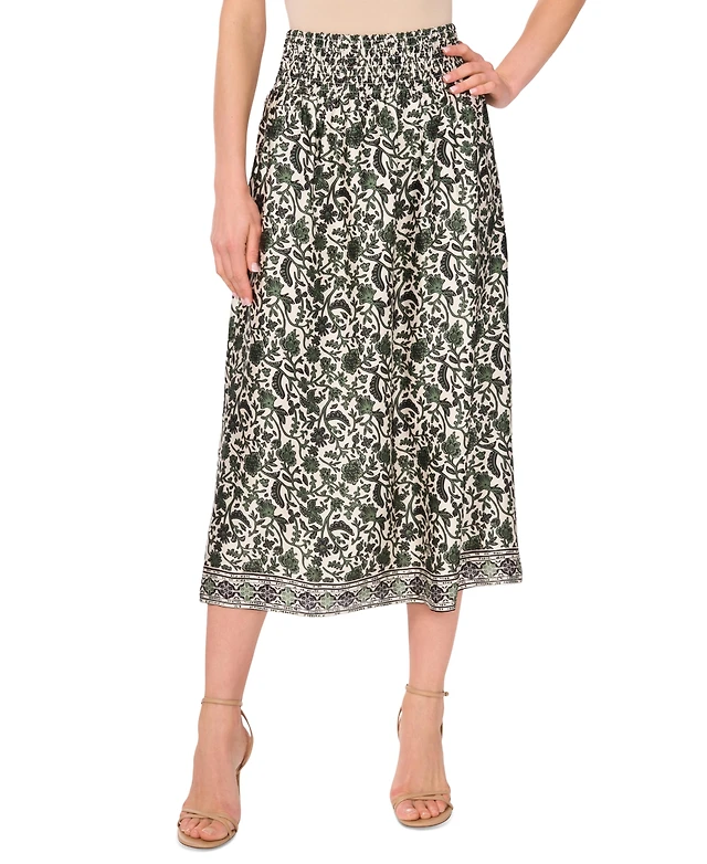 Vince Camuto Women's Floral-Print Smocked-Waist Skirt