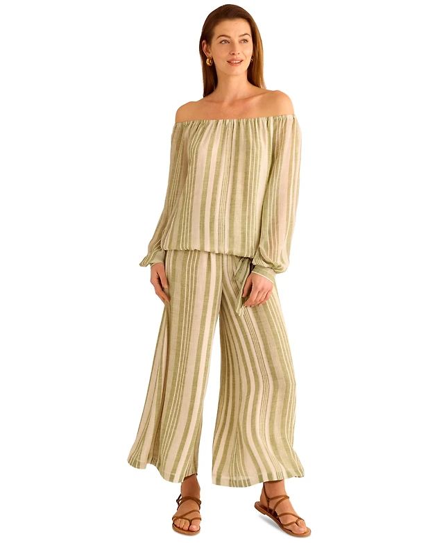 Vince Camuto Women's Stripe Off-the-Shoulder Tied-Hem Top