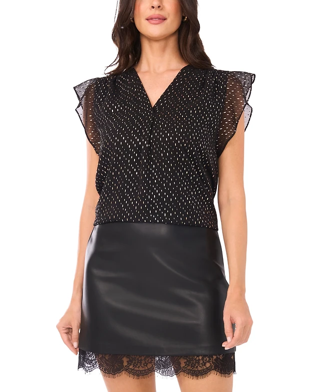 Vince Camuto Women's V-Neck Ruffle Sleeve Top