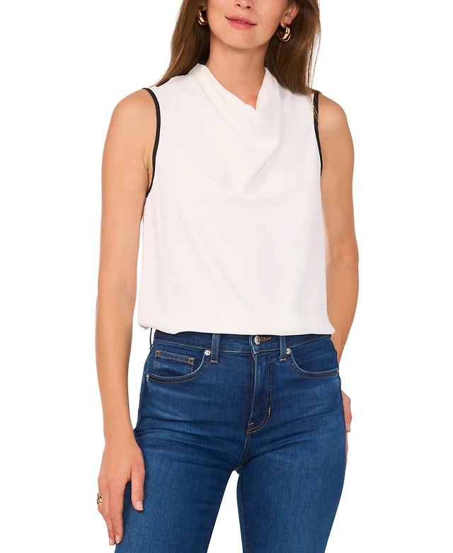 Vince Camuto Women's Cowlneck Contrast-Trim Sleeeveless Top