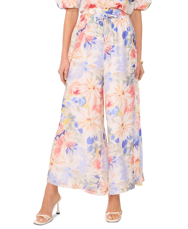 Vince Camuto Women's Floral-Printed Angled-Hem Wide-Leg Pants
