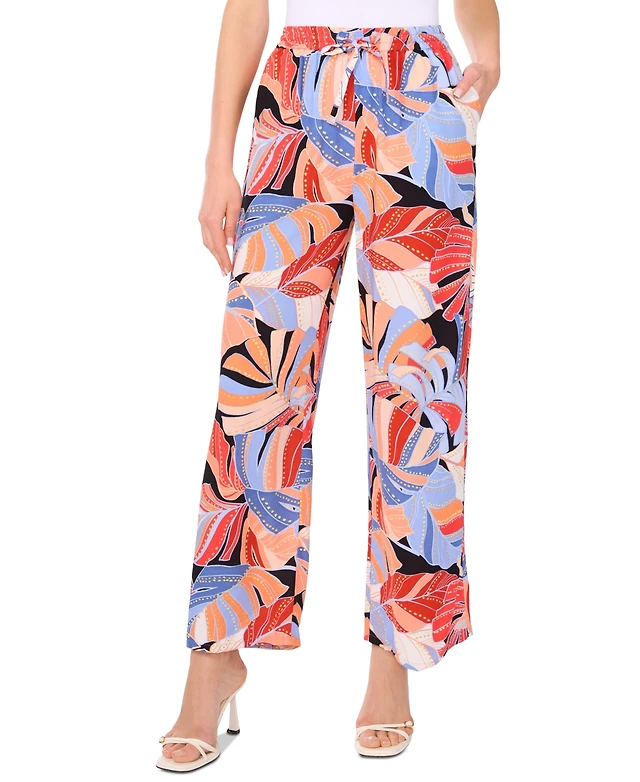 Vince Camuto Women's Tropical-Print Drawstring-Waist Wide-Leg Pants, Xs-3X