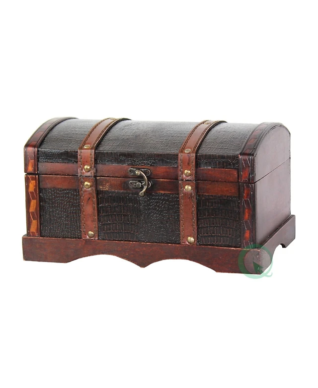 Vintiquewise Decorative Wood Leather Treasure Box - Large Trunk