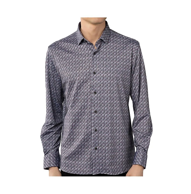 Luchiano Visconti Men's Multi line Leo king Cotton Long Sleeve Shirt