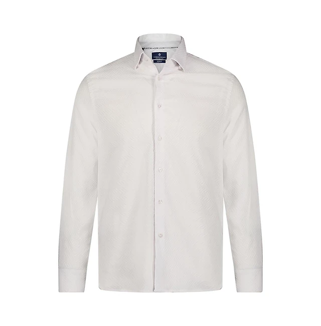 Luchiano Visconti Men's White Tiny Petal Jacquard Shirt