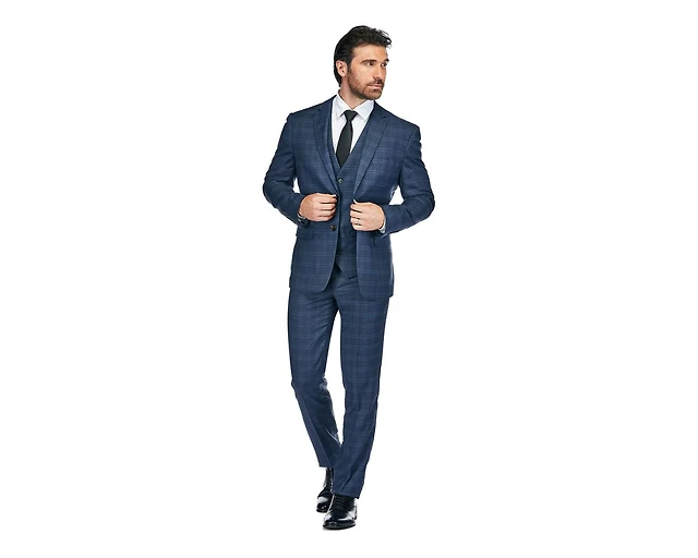 Gino Vitale Men's Slim Fit 3-Piece Blue Windowpane Plaid Suit