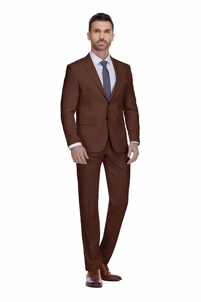 Gino Vitale Men's 2 Piece Slim Fit Brown Check Double Breasted Suit