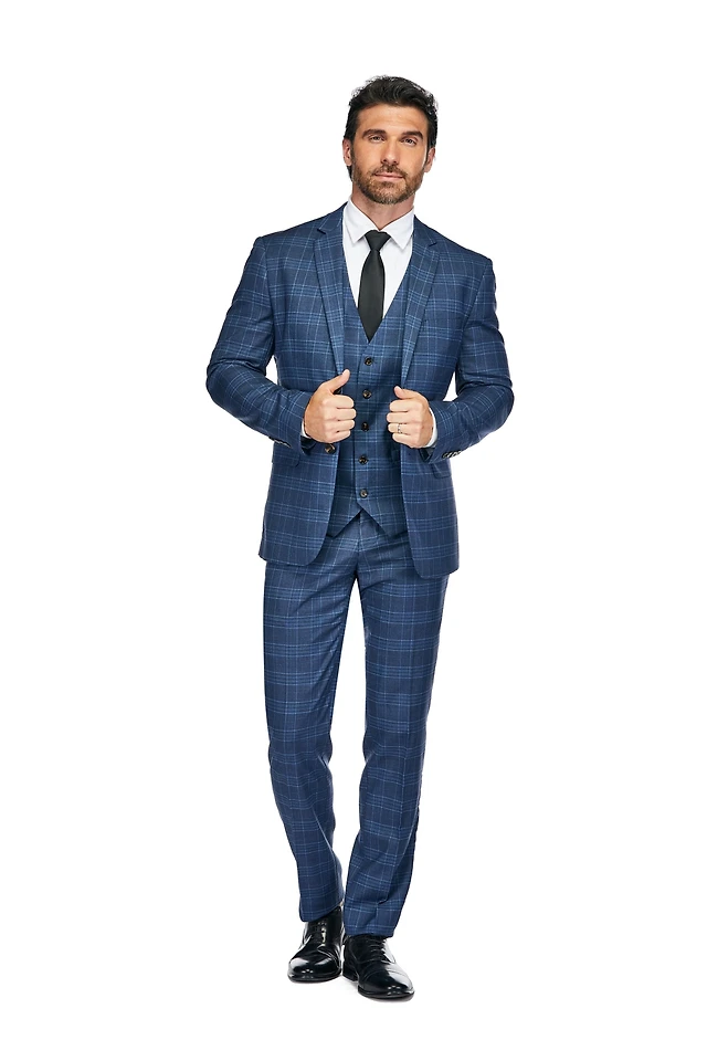 Slim Fit 3PC Tailored Blue Check Men's Suit