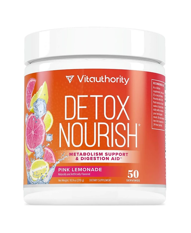 Detox Nourish Powder, Metabolism Support & Anti-Bloat Digestive Aid, Pink Lemonade, Vitauthority, 310gm