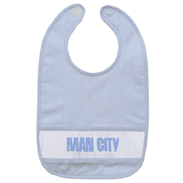 Infant Vive La Fete Sky Blue Manchester City Mini Check Smocked Baby Bib