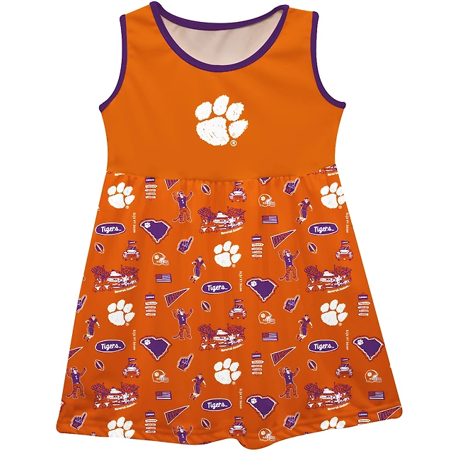 Girls Infant Vive La Fete Orange Clemson Tigers Impressions Artwork Tank Top Dress