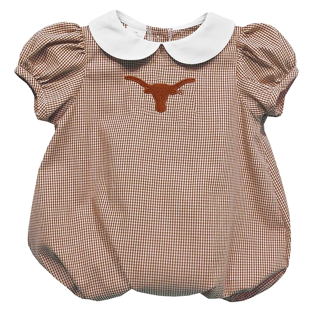 Girls Infant Vive La Fete Texas Orange Texas Longhorns Gingham Puffy Bubble Dress
