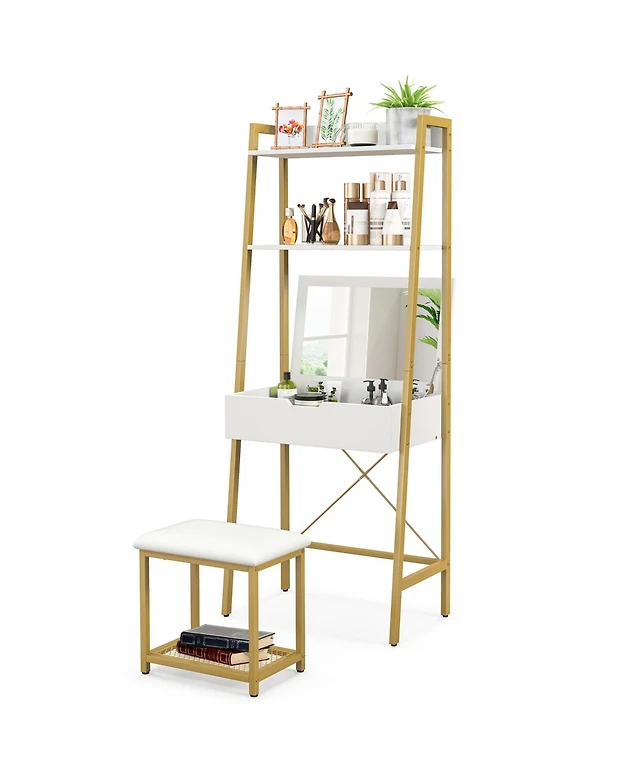 3-in-1 Vanity Set with Cushioned Stool and Flip-up Mirror
