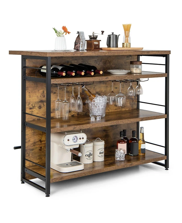 Bar Table Faux Marble Pub Table with 7 Hanging Hooks Compartment
