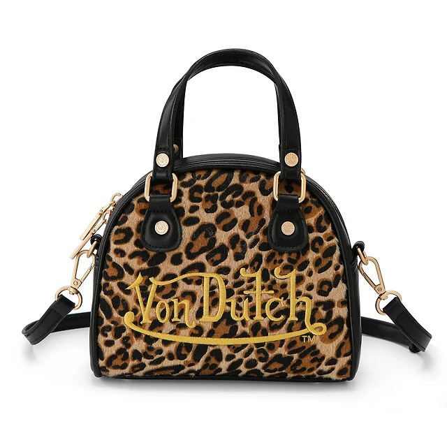 VON DUTCH: LEOPARD VEGAN PONY HAIR CHEETAH BOWLING BAG
