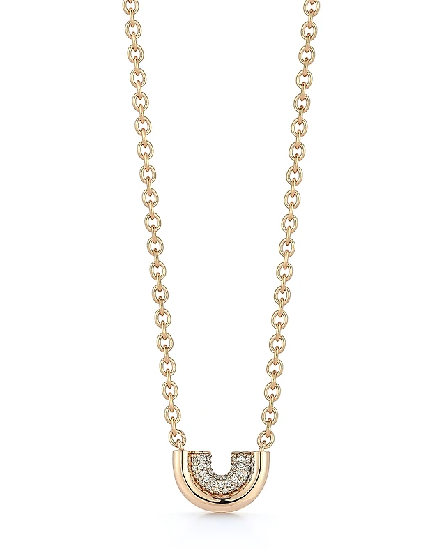 Walters Faith 18K Rose Gold Diamond Saxon Mini Single Link Pendant Necklace, 16