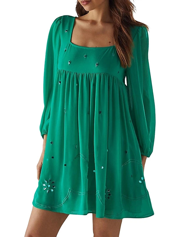 Warehouse Women's Hand Embellished Square Neck Mini Dress