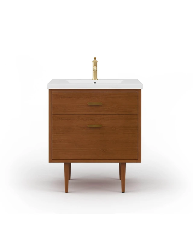 Brandy in. W x in. D x in . H Bath Vanity in Honey Walnut with White Ceramic Top