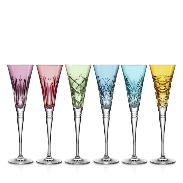 New Year Firework Champagne Flute Glasses, Set of 6 Mixed