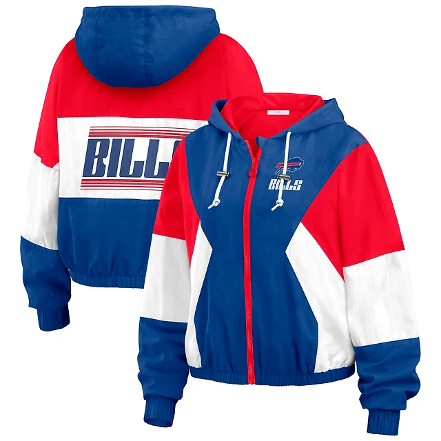 Women's WEAR by Erin Andrews Royal/Red Buffalo Bills Plus Size Color Block Full-Zip Windbreaker Jacket