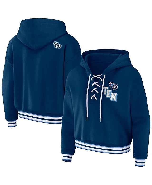 Wear by Erin Andrews Women's Navy Penn State Nittany Lions Lace-Up Pullover Sweater