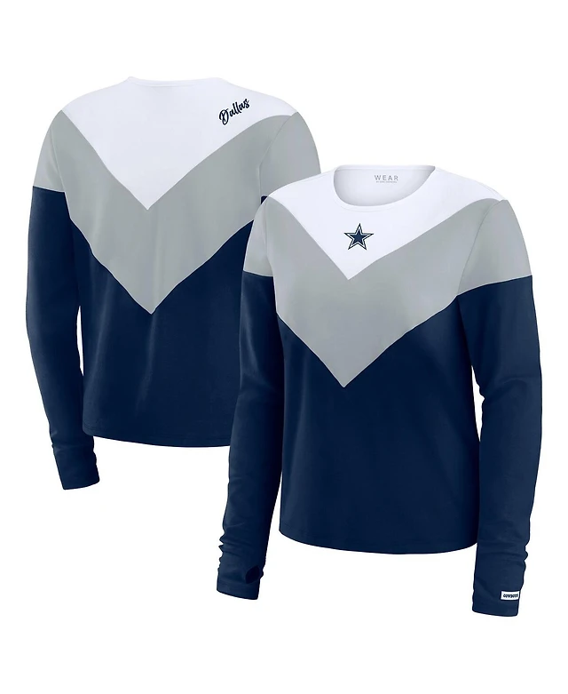 Wear by Erin Andrews Women's Navy Dallas Cowboys Plus Chevron Tri-Blend Long Sleeve T-Shirt
