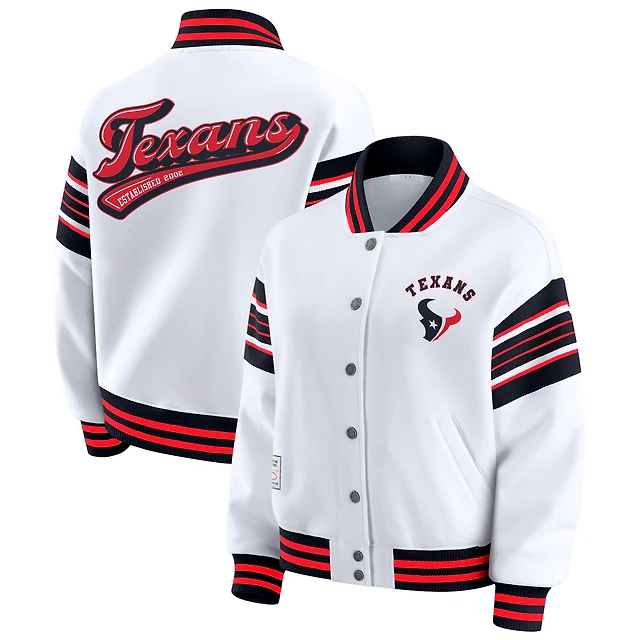 Women's WEAR by Erin Andrews White Houston Texans Full-Snap Fleece Sweatshirt Jacket