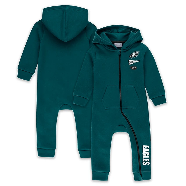 Infant & Newborn WEAR by Erin Andrews Green Philadelphia Eagles Hooded Fleece Full-Zip Coverall