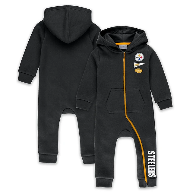 Infant & Newborn WEAR by Erin Andrews Black Pittsburgh Steelers Hooded Fleece Full-Zip Coverall