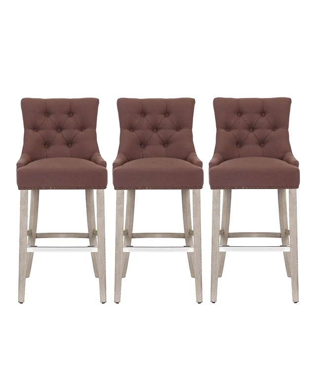 29" Upholstered Linen Fabric Tufted Bar Stool Chair