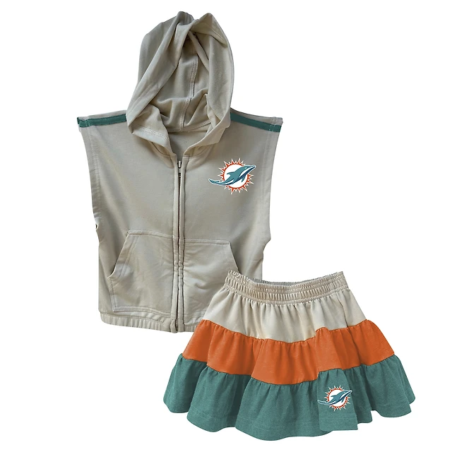 Wes & Willy Girls Toddler 2-Piece Tan Georgia Bulldogs Tri-Blend Sleeveless Full Zip Hoodie and Tiered Skirt Set