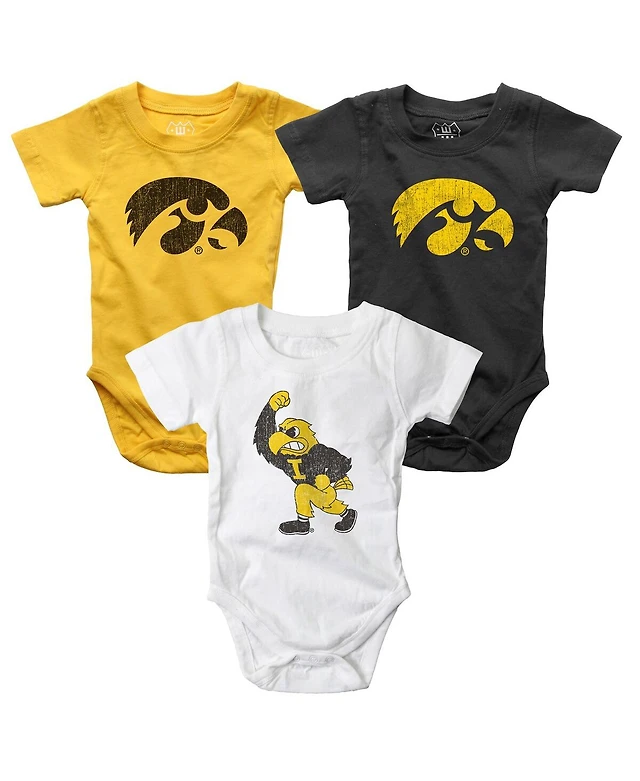 Wes & Willy Baby Boys and Girls 3-Pack Gold/White/Black Iowa Hawkeyes Bodysuit